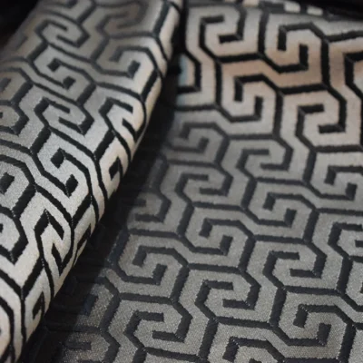 پرده ساتن ژاکارت طرحدار greek key مدل ابریشم بافت دار