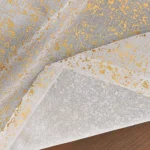 پرده تیکو دکو مدل حریر ژورژت طلاکوب (ظریف و شفاف) از پر طرفدار ترین پرده هاست, این محصول دارای طلاکوب یا نقره کوب هایی به شکل هندسی به روی پارچه حریر ژورژت نقش بسته است. پارچه این محصول بسیار ظریف و مستحکم از الیاف قوی, پارچه ای بسیاز نرم و لطیف که وقتی نوری به ان تابیده میشود ظاهری درخشنده و زیبا به خود میگیرد. تولید کارخانه بریلنت ترکیه میباشد (که منحصرا تیکو دکو نمایندگی ان را دارد), طلاکوب یا نقره کوب این محصول که به صورت اشکال هندسی از پایین پرده به صورت پر و تراکم زیاد شروع شده و هرچه بالاتر ادامه مقدار طلاکوب کمترمیشود و از کف پرده (پایین پرده) تا ارتفاع حدود 125 سانتیمتر طلاکوب یا نقره کوب میباشد و بعد از ان پارچه تا بالای پرده (قسمت پانچ شده) حدود 155 سانتیمتر به صورت ساده و بدون طرح میباشد. این پرده منحصر به فرد طبق محصولات دیگر تیکو دکو از کیفیت برتر برخوردار بوده و تیکو دکو جهت راحتی ورفاه شما عزیزان مثل همیشه, تنوع وابعاد زیادی طراحی و تولید نموده که به اکثر ابعاد و پنجره ها و محل مورد نظر شما عزیزان همخوانی دارد که به راختی میتوانید در فروشگاه تیکو دکو جستجو و مشاهده بفرمایید. پرده تیکو دکو مدل حریر ژورژت طلاکوب مناسب برای پوشش تمامی مکان ها ,درب ها و پنجره ها میباشد, عبور نور و دید داخلی بخاطر نازکی و ظرافت این محصول حدود 95 درصد بوده که باعث درخشانی و زیبایی فضا میشود.